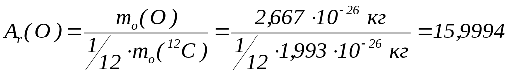 Одиниця виміру маси атома – атомна одиниця маси (а.о.м.). Маса атома, виражена у а.о.м., чисельно дорівнює відносній атомній масі.