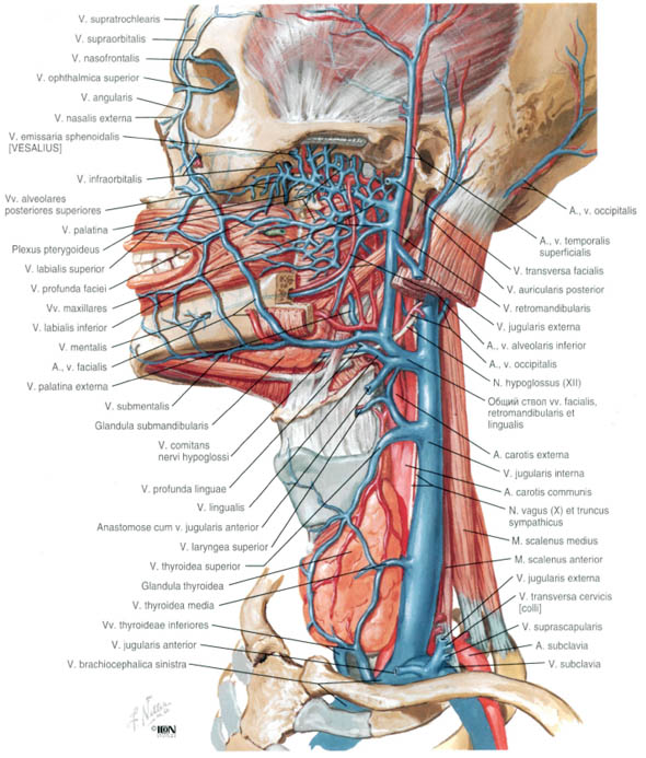 - •1. Венозный отток в области лица, связь с венами – синусами твердой мозговой оболочки и шеи, значение при воспалительных процессах.