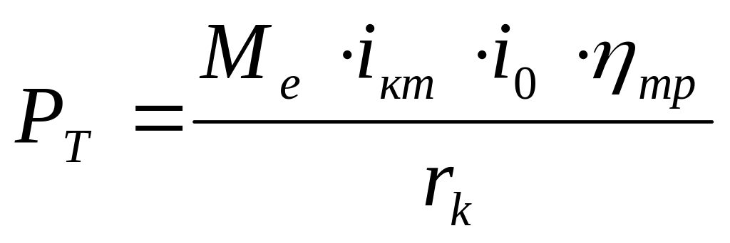 Сила тяги на ведущих колесах автомобиля определяется по формуле