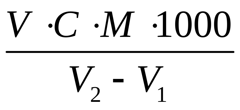 де V - об'єм розчину тіосульфату натрію, витраченого на титрування, мл;