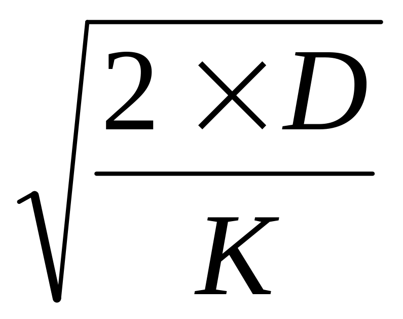 7. По какой формуле вычисляется оптимальный размер заказа, если известно, что F - стоимость выполнения одной партии заказа, D -годовая потребность в сырье, К - затраты по хранению (в % от цены приобретения)