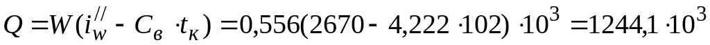 2. В выпарном аппарате коэффициент самоиспарения раствора равен нулю, так как по условию задачи раствор поступал при температуре кипения. О тепловых потерях ничего не сказано, поэтому их принимаем равными нулю. Рассчитаем тепловую нагрузку выпарного аппарата по выражению: