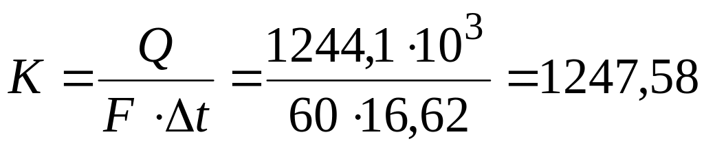 3. Рассчитаем значение коэффициента теплопередачи от пара к раствору из основного кинетического уравнения теплопередачи: