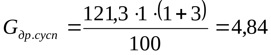 Найдем количество дрожжевой суспензии Gдр.сусп , кг, по формуле
