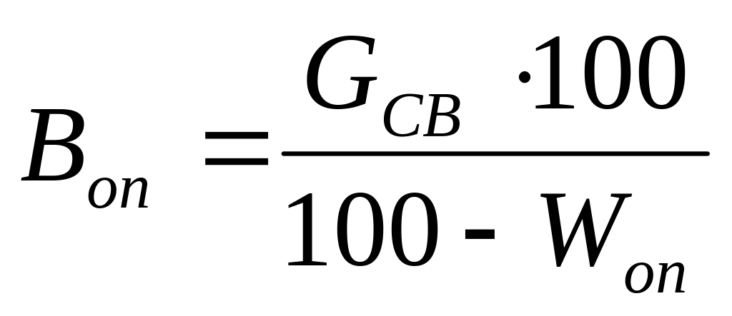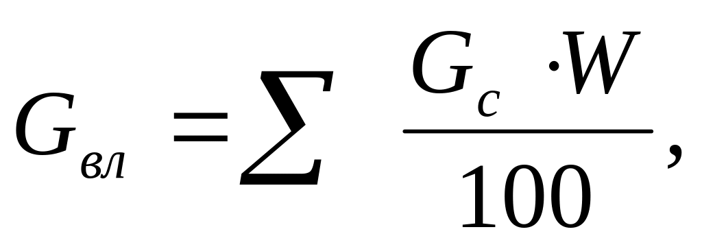 Находим содержание влаги в сырье Gвл ,кг, по формуле