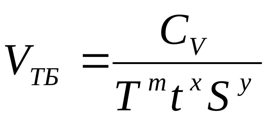 Значение коэффициента CV и показателей степени, содержащихся в этих формулах, так же как и периода стойкости Т инструмента, применяемого для данного вида обработки, приведены в таблицах для каждого вида обработки. Вычисленная с использованием табличных данных скорость резания VТБ учитывает конкретные значения глубины резания t, подачи S и стойкости Т и действительна при определенных табличных значениях ряда других факторов. Поэтому для получения действительного значения скорости резания V с учетом конкретных значений упомянутых факторов вводится поправочный коэффициент КV . тогда действительная скорость резания V = VТБ КV , где КV - произведение ряда коэффициентов. Важнейшими из них, общими для различных видов обработки, являются: