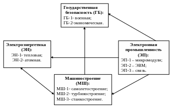 ГБ-2 - экономическая безопасность. Ориентированный граф отношений между компонентами этой системы: