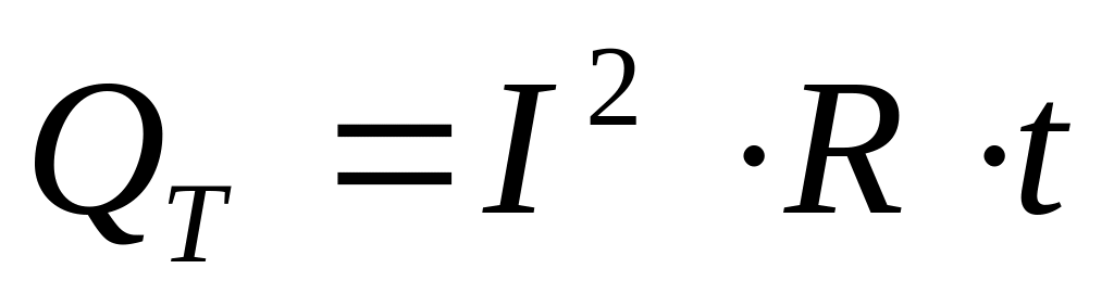 Количества тепла, выделенное в проводнике, QТ пропорционально квадрату тока, проходящему через проводник, его сопротивлению и времени прохождения тока:
