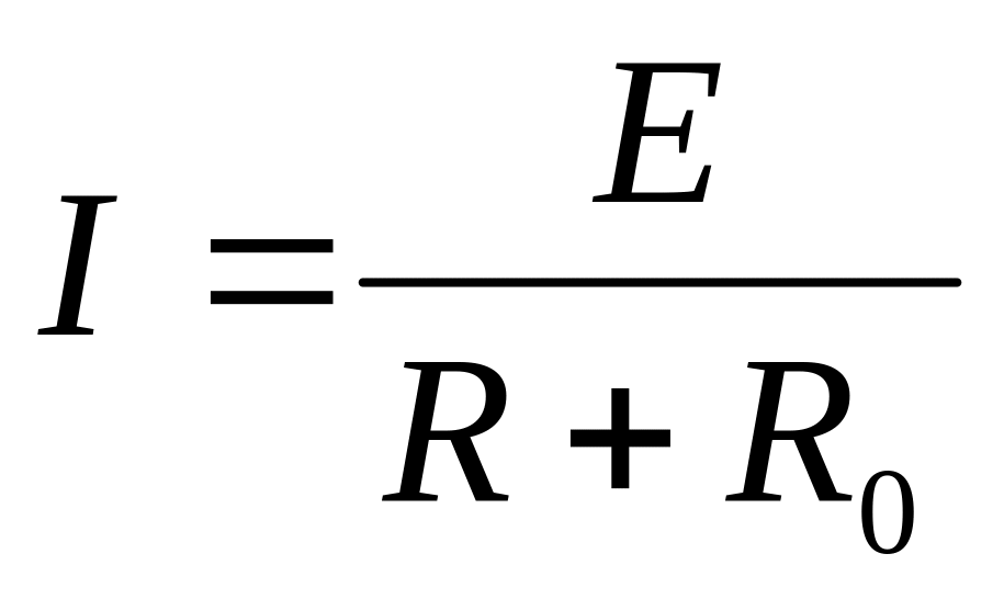 В замкнутой электрической цепи, содержащей источник с внутренним сопротивлением R0, ток прямо пропорционален э.д.с. источника и обратно пропорционален сопротивлению всей цепи: