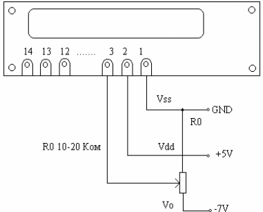 На рисунке 6 приведены схемы подключения питание к двум типам LCD-модулей : нормального и расширенного температурных диапазонов.