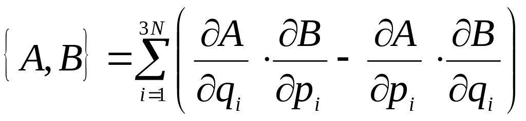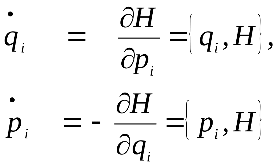 − функція Гамільтона (повна енергія) системи, m – маса частинки, {А, В} – класична дужка Пуассона:
