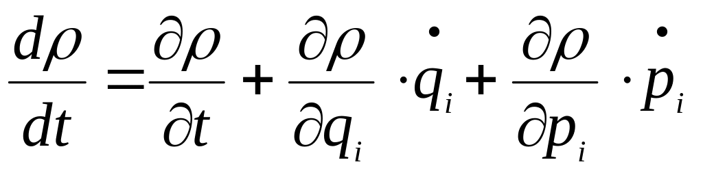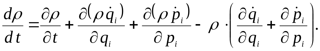 Знайдемо рівняння для фазової щільності . Фазові точки переміщуються з часом по траєкторіях, які визначаються рівняннями Гамільтона (11.1). При цьому значення в околі кожної такої точки змінюється зі швидкістю, яка визначається повною похідною за t: