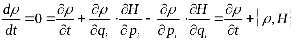 маючи на увазі антисиметричність дужки Пуассона. Рівняння (11.13) для фазової щільності називається рівнянням Ліувілля. Це рівняння лежить в основі статистичного досліджування класичних багаточастинкових систем, тому є основним рівнянням класичної статистичної фізики.