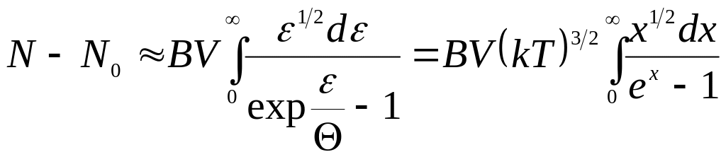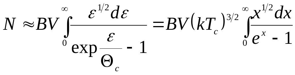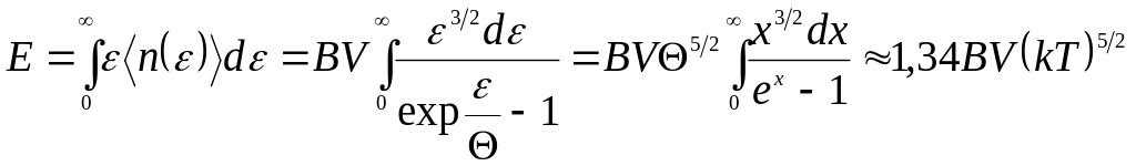 Термодинамічні властивості бозе-газу нижче температури можна знайти, обчисливши внутрішню енергію (з наступним вирахуванням довільних параметрів):