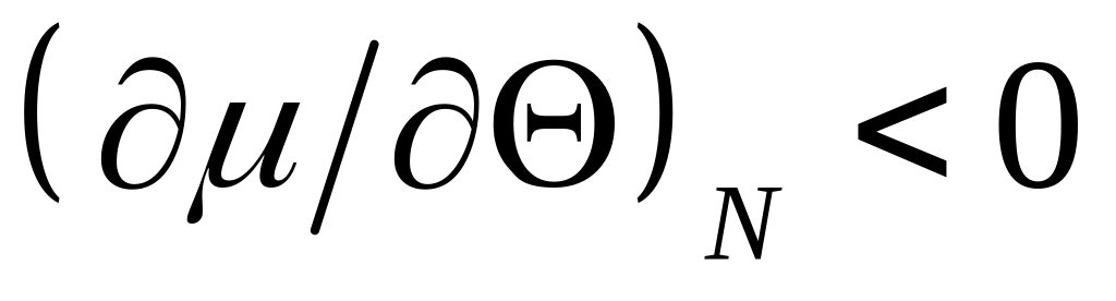 Звідси бачимо, що у розглядуваній області хімічний потенціал із зростанням зменшується. Припущення можна зробити і для (14.30). При цьому, розділивши (14.30) на (14.32), отримаємо