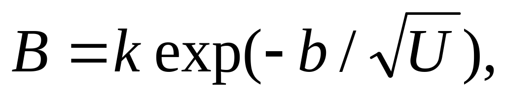 де U - збуджуюча напруга; k, b - коефіцієнти, які залежать від частоти збуджуючої напруги. В логарифмічному масштабі співвідношення (3.1) - пряма лінія: