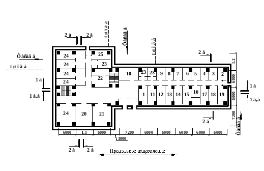 1 – помещение для приема передач больным; 2 – заготовочная концентратов и полуфабрикатов; 3 – аналитическая; 4 – ассистентская; 5 – помещение для хранения лекарственных препаратов; 6 – помещение для хранения вспомогательных материалов; 7 – стерилизационная лекарственных форм; 8 – дистиляционная-стериализационная; 9 – моечная; 10 – дезинфекционная; 11 – бухгалтерия; 12 – архив; 13 – помещение для хранения перевязочных средств;14 – помещение для хранения дезинфекционных средств;15 – кабинет заведующего аптекой;16 – аптека;17 – информационная;18 – помещение для сушки и стирки рабочей одежды; 19 – бельевая;20 – гардеробная; 21 – регистратура; 22 – помещение для прививок; 23 – уборные; 24 – кабинет врачей педиатров; 25 – процедурная для детей