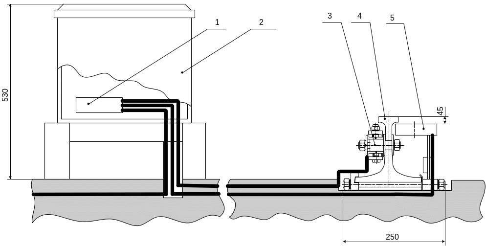 Весомерное устройство включает в себя измерительный рельс 4, на котором смонтирован путевой блок регистрации взаимодействия колеса и рельса 3, а также два магнитных датчика. Информационные выводы путевого блока регистрации взаимодействия колеса и рельса 3 и датчиков магнитных 5 соединены с блоком подключения датчиков 1, который размещен в трансформаторном ящике 2. Структурно это можно представить в следующем виде: