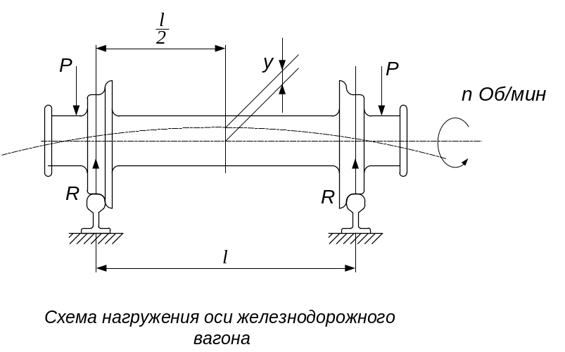 Рис. 9.9. Схема рабочих нагрузок оси железнодорожного вагона