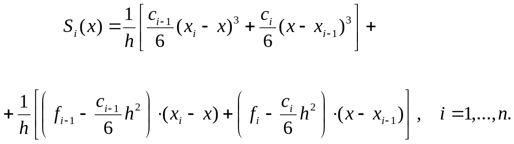 С увеличением числа узлов интерполирования растет степень полинома, что приводит к росту объема вычислений, а чтобы оценка погрешности (20) была конструктивной, требуется высокая гладкость приближаемой функции. Поэтому в середине прошлого века весьма плодотворной оказалась идея использовать кусочно-полиномиальную интерполяцию при помощи полиномов третьей степени, так называемых кубических сплайнов.