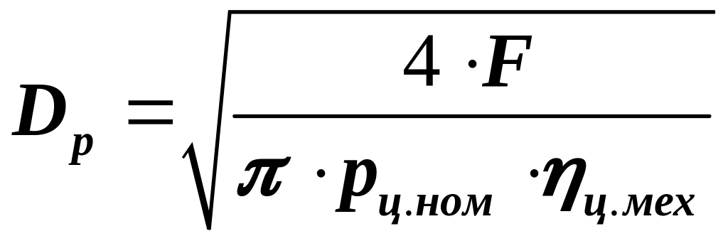- при рц.ном = 1,5…5,0 МПа діаметр штока буде дорівнювати d = 0,5·D;