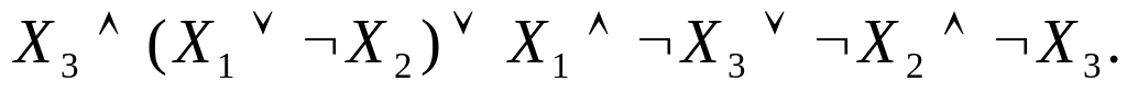 Всій схемі також ставиться в відповідність булева змінна f, яка приймає значення 1, якщо схема проводить струм, і 0 в противному випадку. Змінна f, яка відповідає схемі, являється булевою функцією від змінних X1, X2, …, Xn відповідних реле. Така функція називається функцією провідності схеми, а її таблиця – умовами роботи схеми. Наприклад, функція провідності схеми, яка зображена на рис. 2, задається пропозиційною формою: