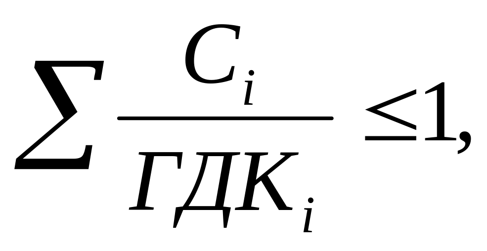 де Сі. і ГДКі відповідно концентрація і ГДК і-ої речовини, приналежної до даної ЛОШ.