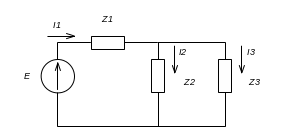 Розрахувати струми в колі (рис. 3) за умови, що опори в колі комплексні (величини їх можна задати довільно).