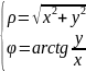 Якщо розмістити прямокутну і сферичну системи координат таким чином, щоб початки координат збігалися, то можна встановити залежності між координатами: