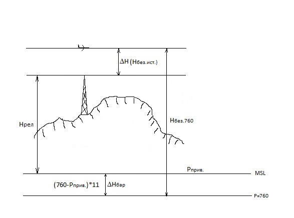 При полетах по Рприв.мин. можно считать что высота отсчитывается от уровня моря, поэтому данная составляющая высоты отсутствует.