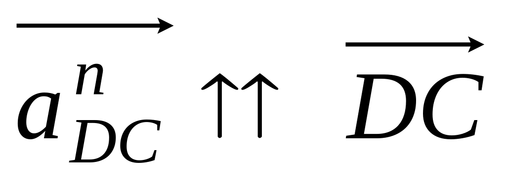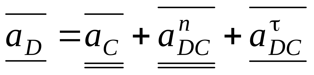 відносного пришвидшення спрямований від точки D до точки C. Величина його розраховується за формулою