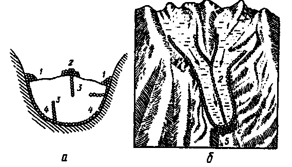 морени: 1 — бічна; 2 — серединна; 3 — внутрішня; 4 — донна; 5 — кінцева