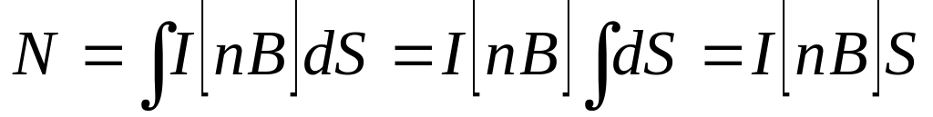 Ток постоянный и поле однородное, поэтому они вынесены за знак интеграла.