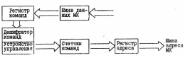 Процесс выполнения каждой команды начинается циклом выборки команды. В этом цикле центральный процессор передает содержимое счетчика команд, являющееся адресом ячейки памяти, через регистр адреса в основную память микро-ЭВМ, где оно дешифруется. Содержимое выбранной ячейки памяти (команда) по шине данных поступает в регистр команд.