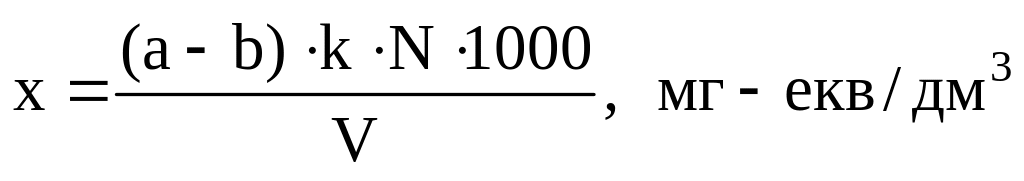 Кількість хлорид-йонів у мг-екв/дм3 (х) чи в мг/дм3 (у) визначають за формулами: