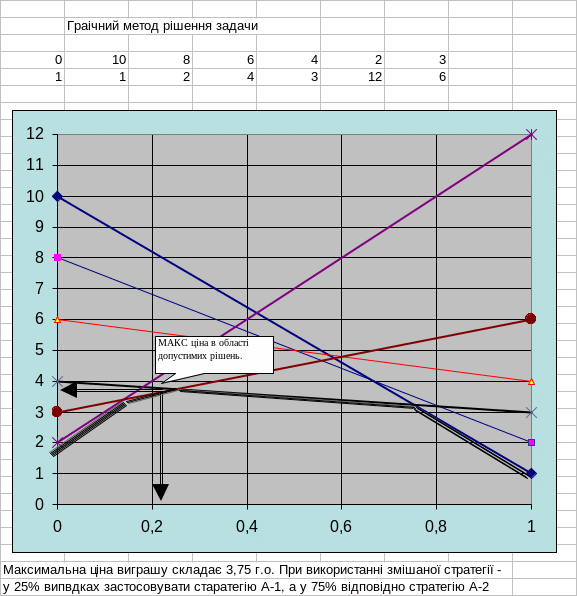 У нашому прикладі стратегії підприємства і конкурентів не співпадають. Коли маємо однакові стратегії то кажуть, що матриця рішень має “седлову” точку.