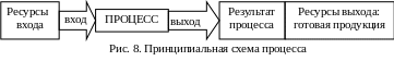 Ресурсы входа и выхода могут быть материальными (сырьё, материалы, электроэнергия, машины, оборудование, инвентарь, автотранспорт) и нематериальными (финансовые, методические, правовые, информационные).