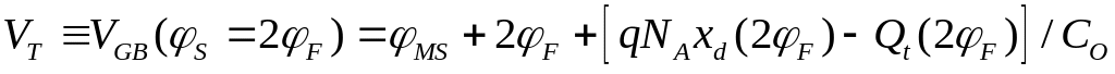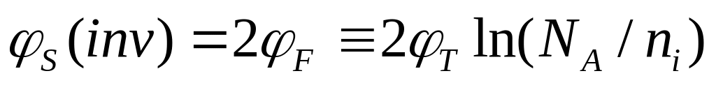 При некотором поверхностном потенциале объемная плотность неосновных носителей (электронов) на границе раздела сравнивается с плотностью основных носителей (дырок) в подложке: n( ) = NA. Этот потенциал соответствует началу режима сильной инверсии