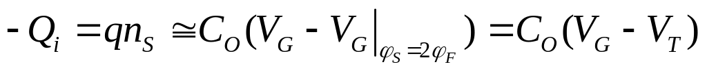 Плотность положительного заряда на затворе (К/см2) должна быть в точности равна плотности отрицательного заряда в полупроводнике (электроны инверсионного слоя плюс ионизированные акцепторы):
