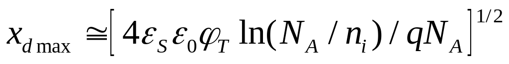 При дальнейшем увеличении напряжения на затворе заряд в инверсионном слое экранирует объем полупроводника от проникновения электрического поля. Соответственно, перестает расти толщина обедненной области, насыщаясь на своем максимальном значении (2.1.7)