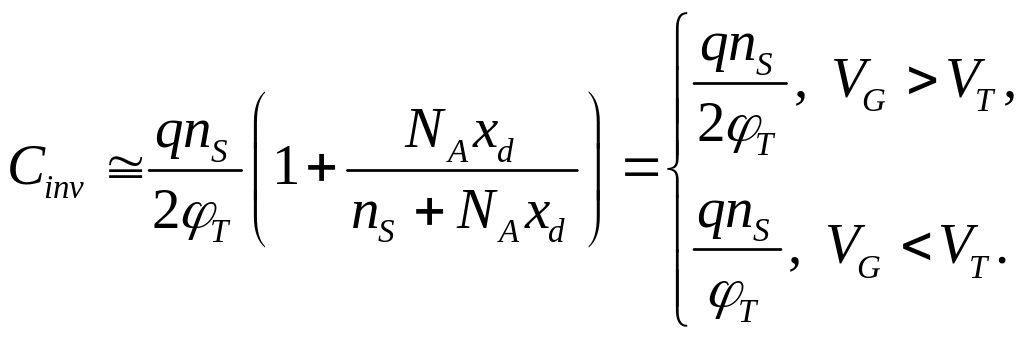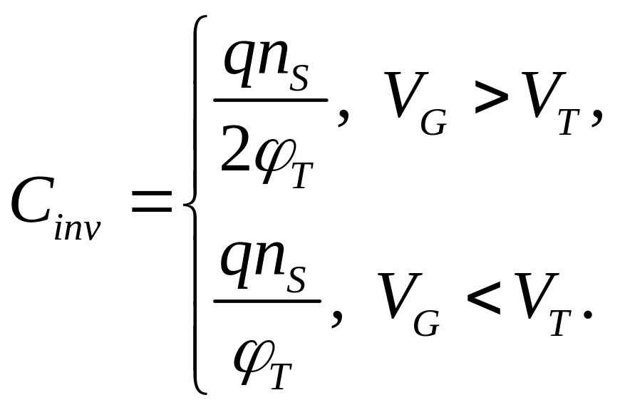 Для емкости инверсионного слоя в надпороговом и подпороговом режимах можно ввести аппроксимацию: