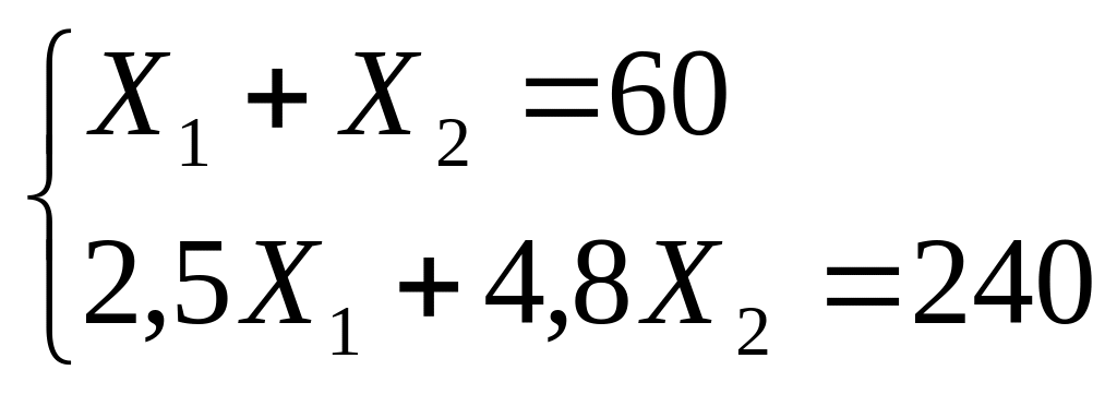 2,5Х1+4,8(60-Х1)=240