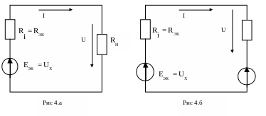 В основе метода эквивалентного источника лежит теорема об активном двухполюснике. Сущность метода заключается в том, что по отношению к выделенной ветви всю остальную часть схемы рассматривают как активный двухполюсник и она может быть заменена эквивалентным источником, т.е. расчет тока в выделенной ветви сведен к расчету тока по одной из схем рис.4 а, б.