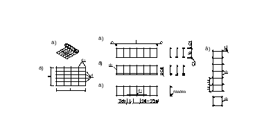 Плоские каркасы объединяют в пространственные каркасы или крупные арматурные блоки (рисунок 4.7, е), которые применяют для армирования конструкций в целом или отдельных их элементов.