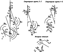 Силовой расчет проводится в соответствии со структурным анализом механизма – для всех структурных групп и исходного механизма. Силовой расчет начинается с наиболее удаленной от исходного механизма структурной группы.