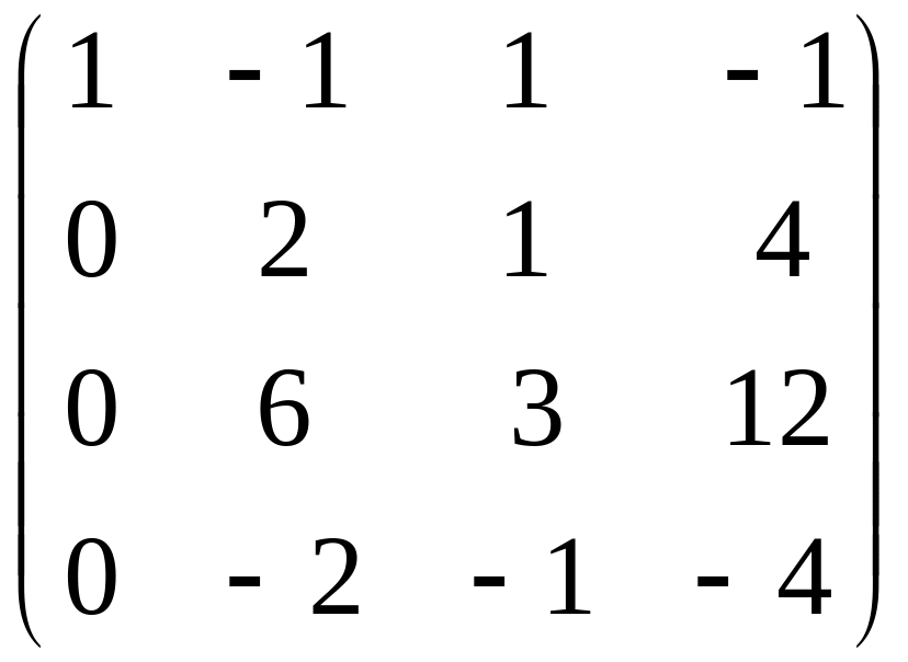3) Виразимо базисні невідомі через вільні. Для цього застосуємо метод Гаусса до матриці системи: