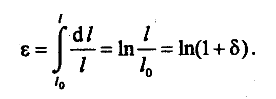 Истинное удлинение е учитывает непрерывно изменяющуюся длину образца в процессе его растяжения, и поэтому е можно определить как сумму бесконечно малых относительных деформаций dl/l при переменном/: