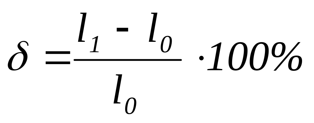 Пластичність металу характеризується відносним здовженням о, яке обчислюють за формулою: