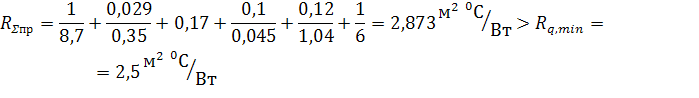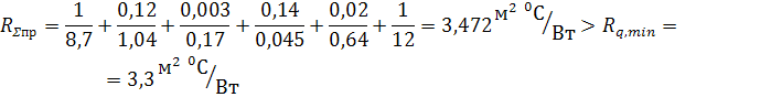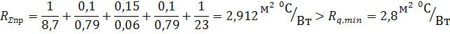 3.Определяем действительное приведенное сопротивление теплопередачи.