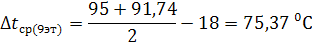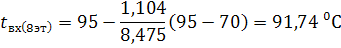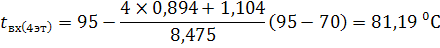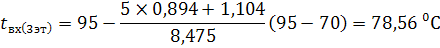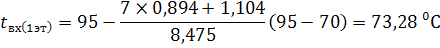 9.Определяем температуру воды, входящую в отопительный прибор.